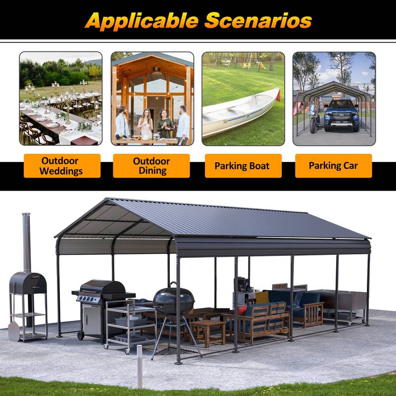 - - Spacious & Versatile: Whether you need shelter for vehicles, boats, or special outdoor events, this expansive carport offers ample space for all your needs.