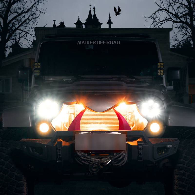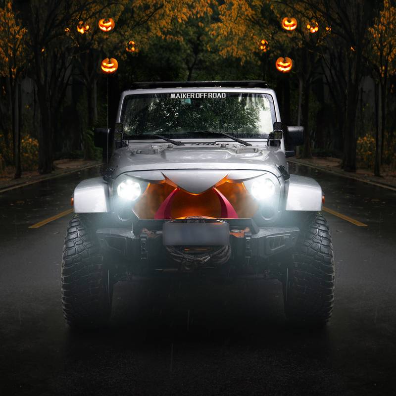 | Application | Halloween grille compatible with 2007-2017 Jeep Wrangler Rubicon Sahara JK Unlimited 2 & 4 Door. (Note: will not fit on 2018 JL models) |