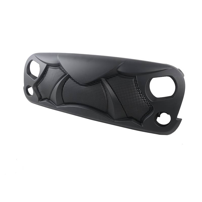 - Transform your Jeep Wrangler with this eye-catching Halloween grille, designed to fit 2007-2017 Wrangler Rubicon Sahara models. Crafted from durable matte black ABS material, it not only enhances your vehicle's bold look but also provides robust protection from damage and masks existing wear. The unique perforated design ensures excellent engine ventilation while shielding your radiator from debris.