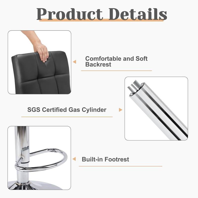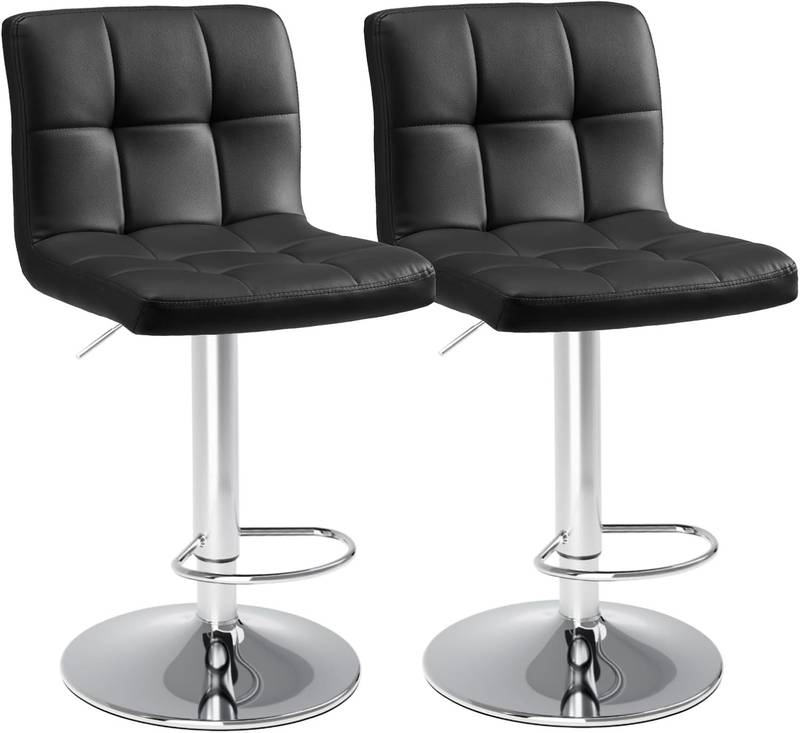 - Introducing our sleek Black PU Leather Bar Stools, designed to elevate your space with style and comfort.