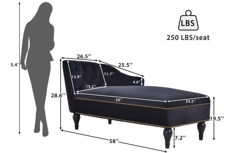 - With a sturdy build that supports up to 250 lbs and a skin-friendly velvet finish, this chaise lounge combines aesthetics with comfort, making it a sophisticated staple in your home. Get ready to lounge in style!