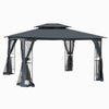- Elevate your outdoor gatherings with our spacious 13x10 Ft gazebo. Crafted from durable, rust-resistant powder-coated metal and topped with waterproof polyester fabric, this stylish gray structure offers a perfect blend of comfort and protection.