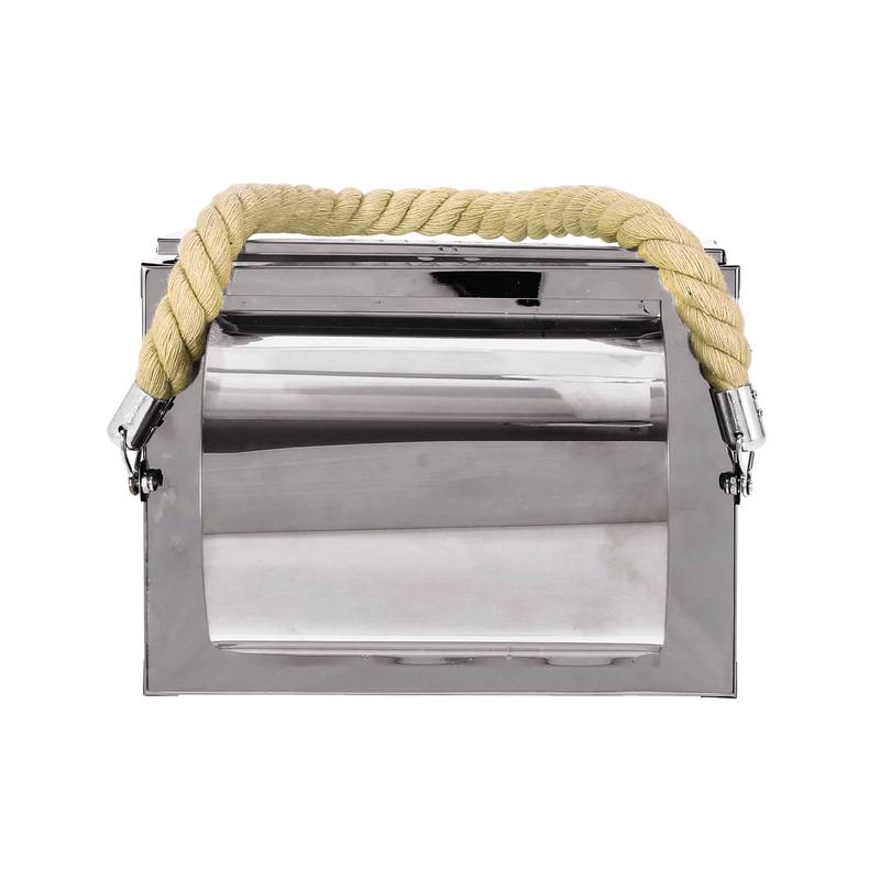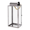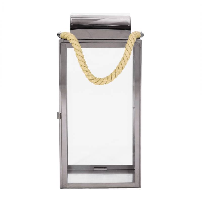 - Elevate your outdoor space with our stunning stainless steel lantern. Its modern design features clean lines and an eye-catching curved cap, all polished for added elegance. Built with rust-resistant stainless steel and finished with tempered glass panels, this lantern not only looks great but is also durable and safe. Measuring 8.50" w x 6.10" d x 18.70" h, it's the perfect size to enhance your ambiance. Plus, with its convenient rope handle, you can easily move it to create just the right glow on your patio or backyard. Illuminate your surroundings in style!