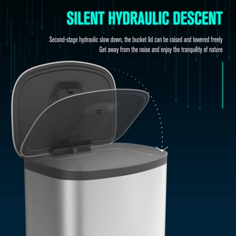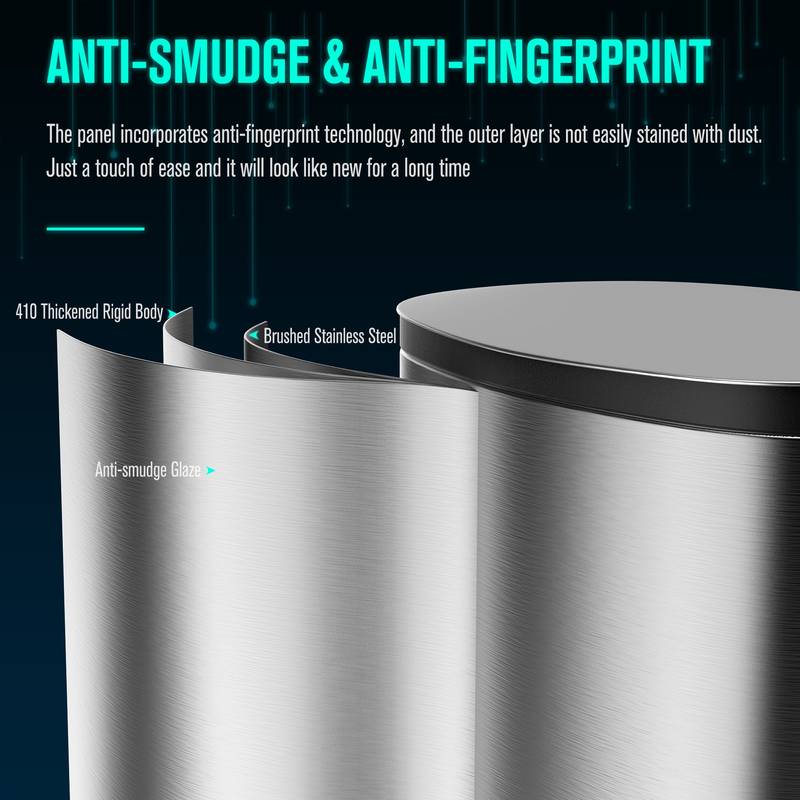 - - Easy Maintenance: Made from high-quality stainless steel, this trash can resists fingerprints and smudges, ensuring it stays looking pristine with minimal effort.