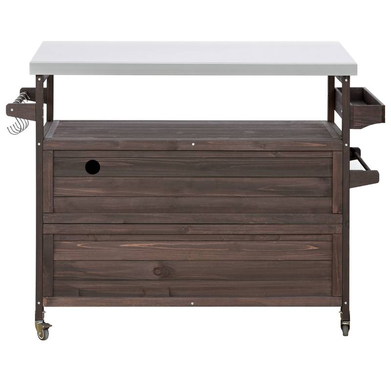 - This Outdoor Kitchen Cart combines style and functionality for all your outdoor gatherings. Made from 100% solid fir wood with a durable 201 stainless steel top, it features ample storage and an efficient modular design to maximize your space.