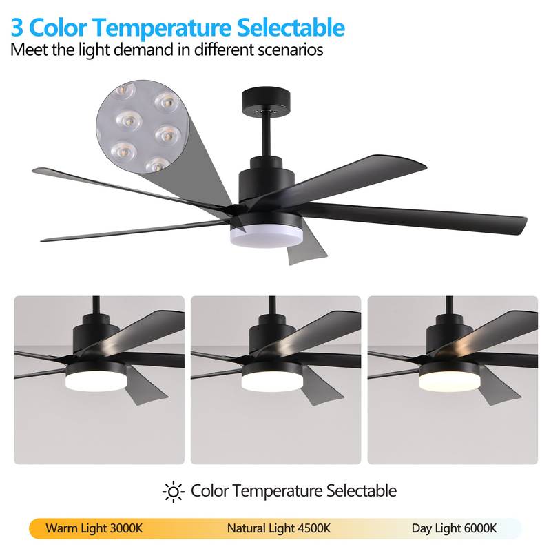 - Introducing the 65-Inch Black Ceiling Fan with Light, where style meets practicality. This sleek fan features a 5-blade design for optimal air circulation, ensuring a quiet and comfortable environment in any room. Enjoy customizable lighting with dimmable LED lights, perfect for any occasion—from bright work tasks to cozy evenings.