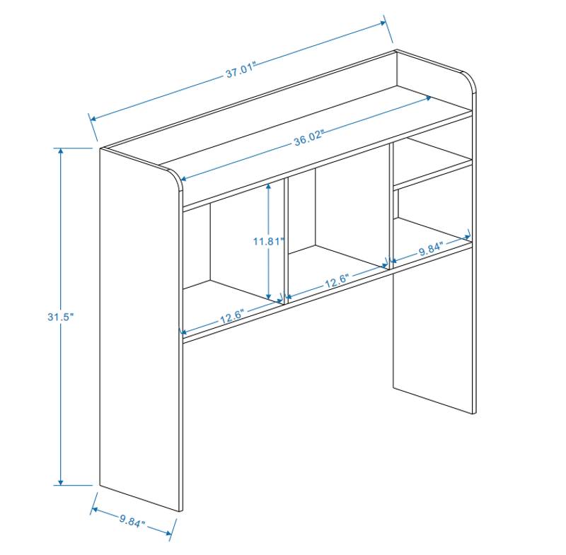 - Crafted from sturdy MDF and finished in a smooth white UV painting, this bookshelf combines modern aesthetics with durability. Its compact dimensions (37.01"L x 9.84"W x 31.50"H) include five versatile compartments—three small and two large—perfect for organizing books, plants, or office supplies.