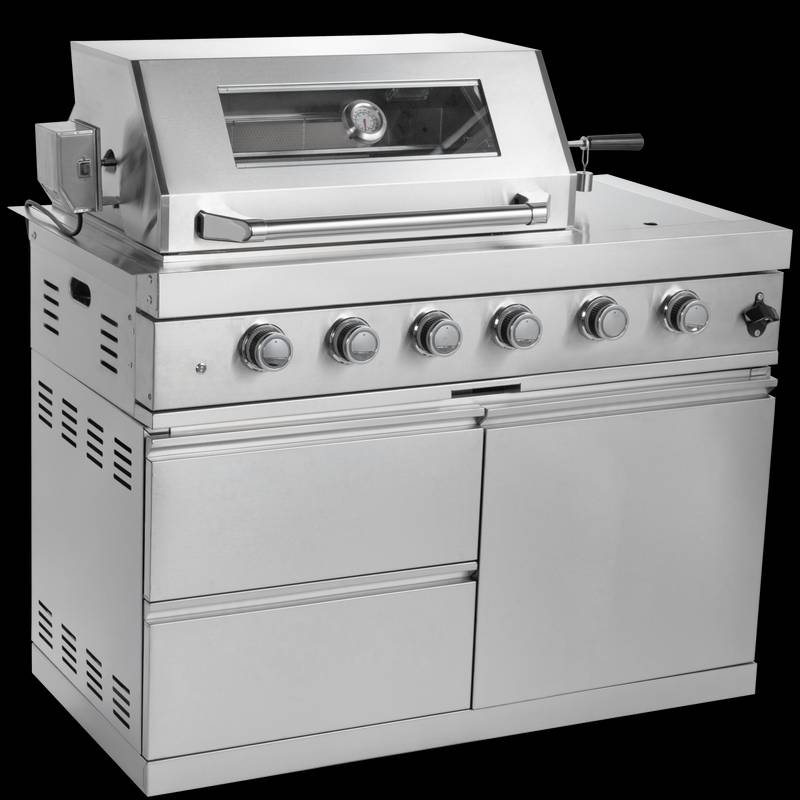 - Elevate your outdoor cooking experience with the SC2401A 32-inch island gas grill. Crafted from durable 304 marine-grade stainless steel, this grill combines style and functionality, boasting 85,000 BTUs across 6 high-efficiency burners and an adjustable ceramic infrared rear burner. With a generous cooking area of 684 square inches and 8mm stainless steel cooking grids, preparing meals for family and friends is a breeze.