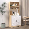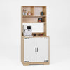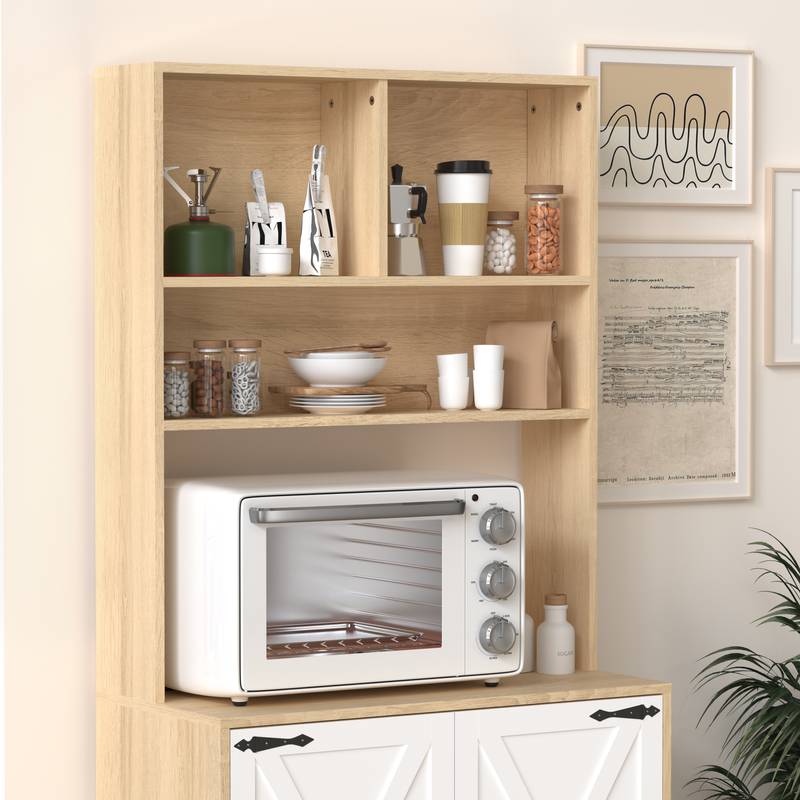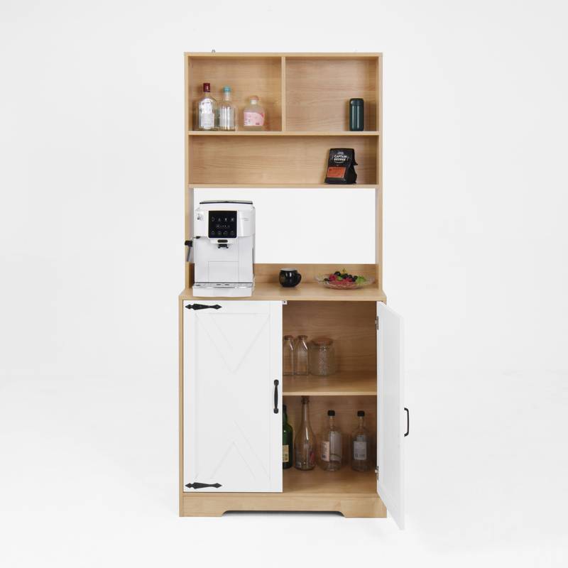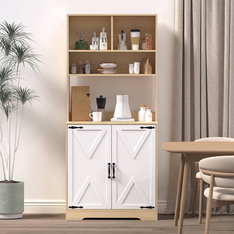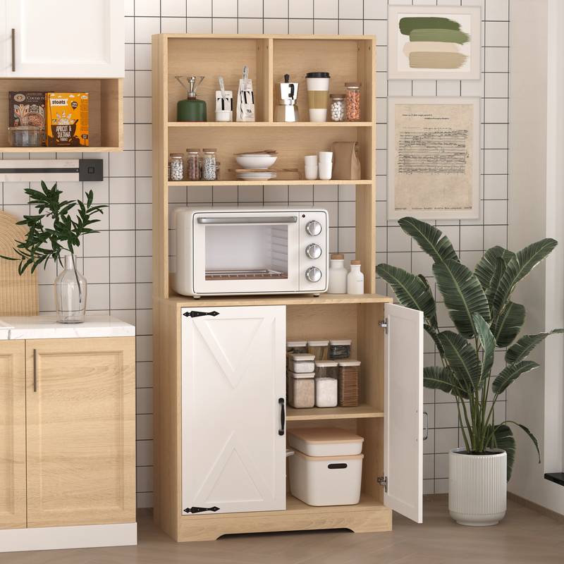- Discover the perfect blend of style and functionality with our modern kitchen pantry. This natural particle board cabinet offers ample storage with two doors and shelves, ideal for organizing groceries, small appliances, and kitchen essentials.