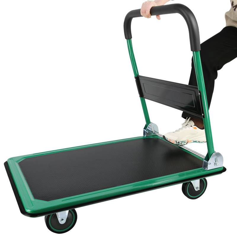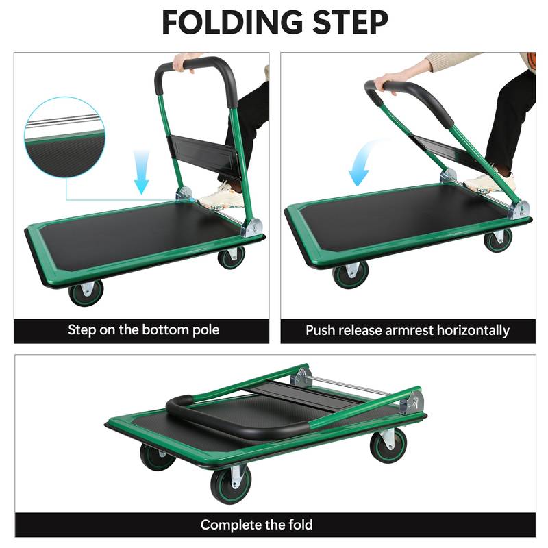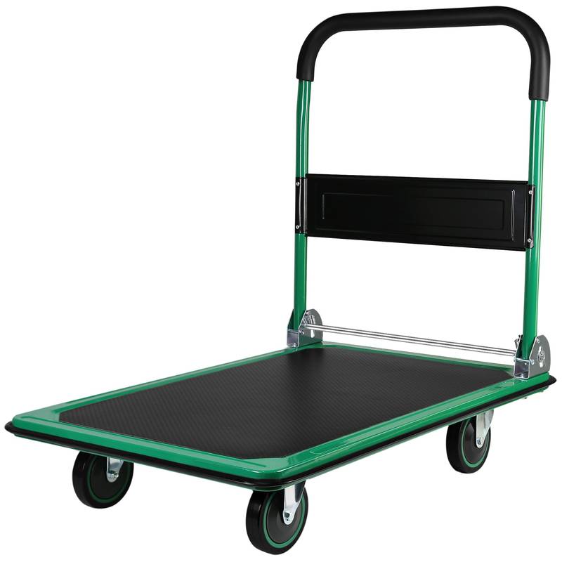 - Perfect for a variety of settings, from garages to warehouses, this versatile platform cart is ideal for anyone looking to simplify their moving tasks. When not in use, it folds down to just 10.6 inches in height for easy storage. Upgrade your hauling game today!