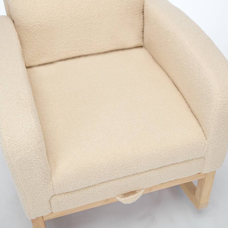 - Introducing the perfect addition to your nursery—the stylish baby rocking chair! This chic beige chair blends comfort and functionality, featuring a gentle rocking motion ideal for relaxation. Its design includes non-slip foot pads for safety and stability.