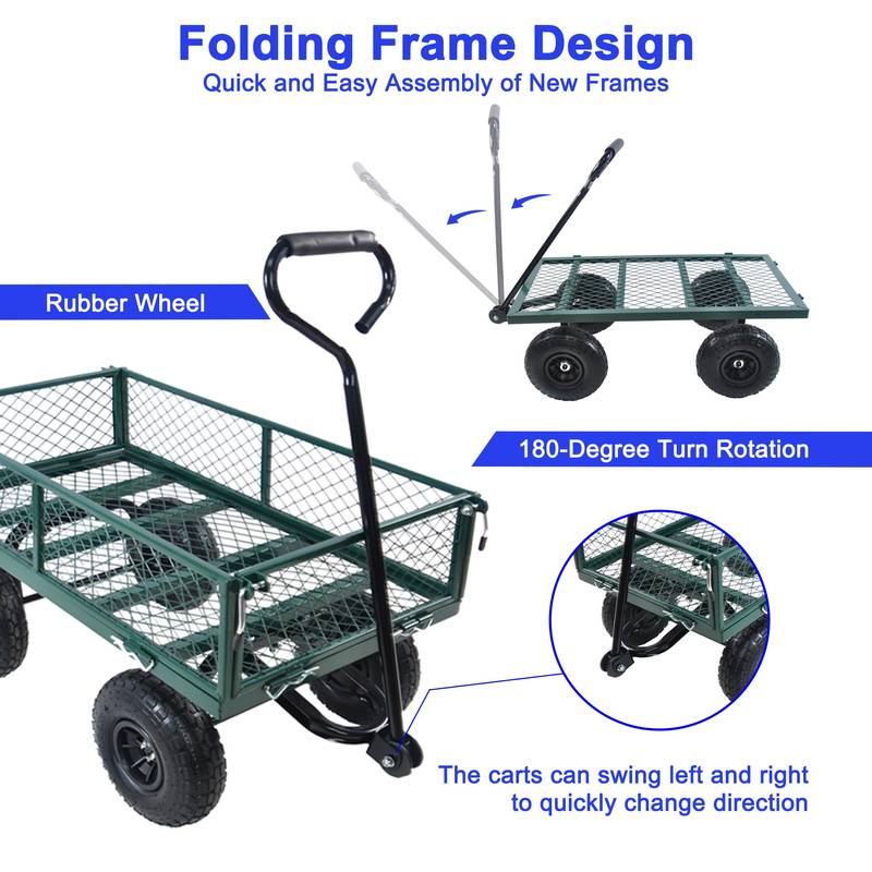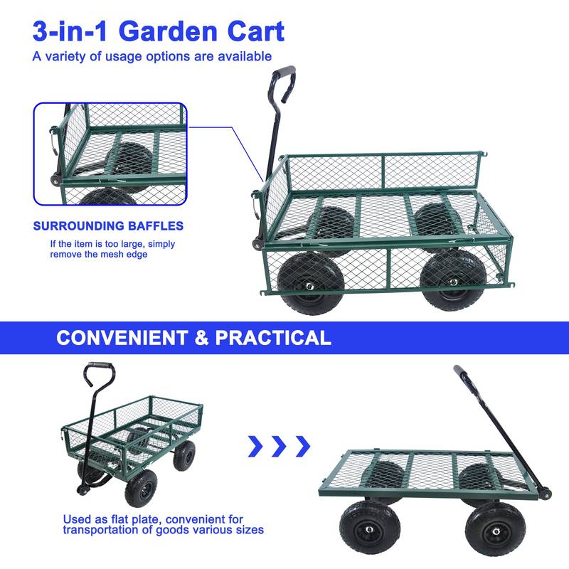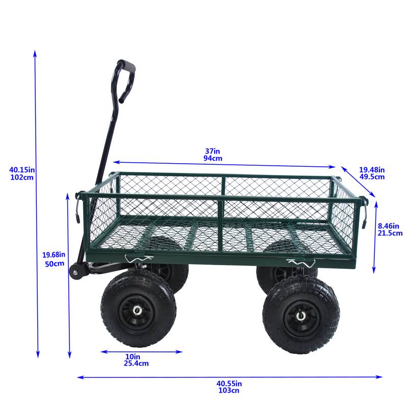 - Introducing the ultimate garden companion! This versatile garden wagon is perfect for hauling firewood, plants, chicken feed, potted soil, and even honeycombs. With a sturdy steel frame and detachable sides, it can easily handle larger loads, supporting up to 550 pounds.