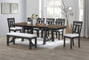 - Experience comfort and style with our charming dining bench, featuring a beautiful Wheat Charcoal finish. Crafted from solid wood, this transitional bench combines durability with a cozy, inviting design, perfect for family meals.