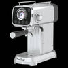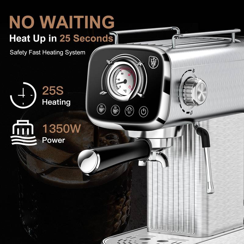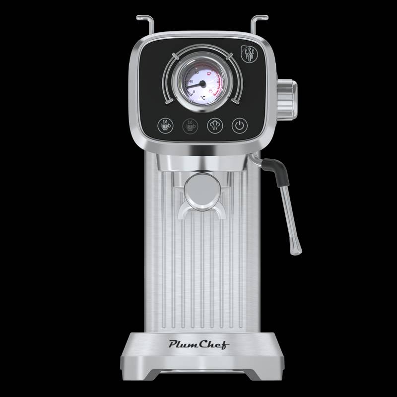 - Discover the ultimate coffee experience with this sleek silver espresso machine. Crafted from high-quality stainless steel, its compact design adds a modern touch to any kitchen while ensuring durability.