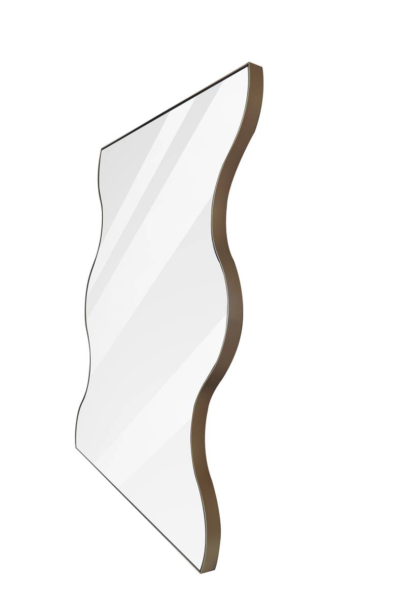 - Elevate your space with our stunning 30x35 inch Wall Mounted Golden Rectangular Mirror. Featuring an elegant metal frame with wavy sides, this mirror seamlessly combines contemporary design and exceptional craftsmanship. Its golden hue adds a touch of modern sophistication, making it perfect for any room—be it the bathroom, living room, or bedroom.