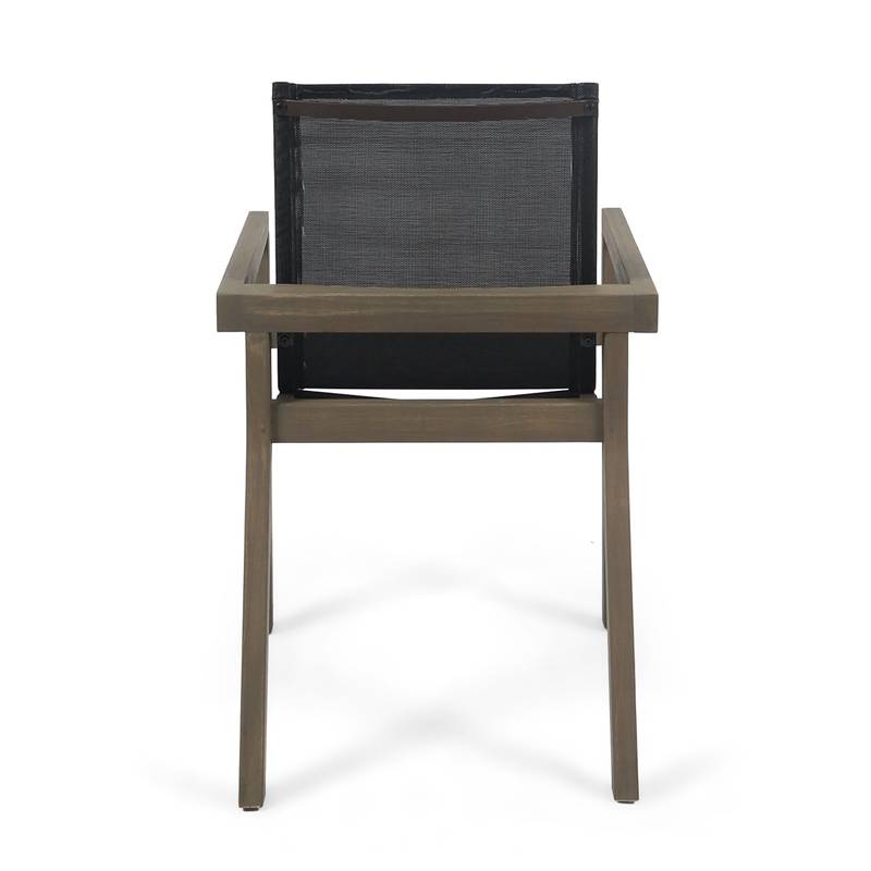 - Upgrade your outdoor dining experience with these stylish grey mesh and acacia wood chairs. Designed for both comfort and durability, they feature a weather-resistant frame that stands up to the elements. The modern aesthetic combines sleek grey mesh with a warm wood finish, enhancing your outdoor space's appeal. With easy assembly and ample seating dimensions, you'll be ready for al fresco gatherings in no time. Relax and enjoy dining outdoors with this inviting seating option.