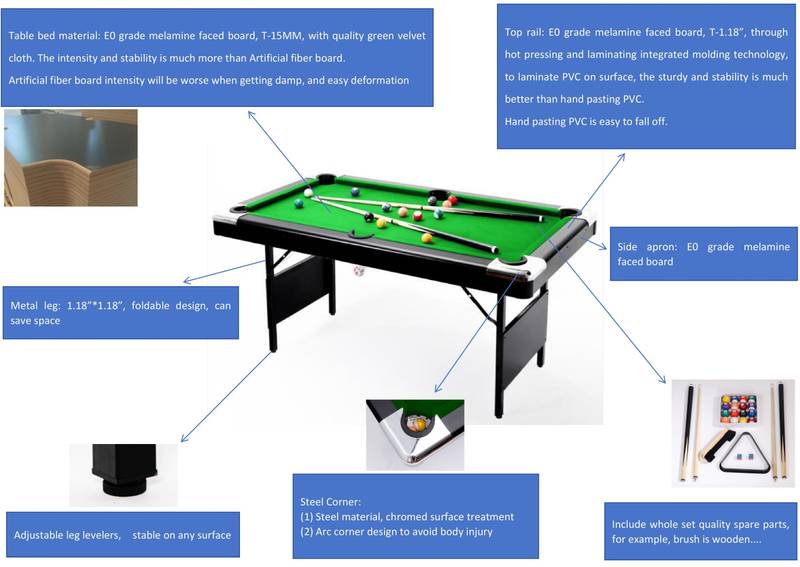 - Designed with sturdy legs and side boards, this table ensures stability while you enjoy your favorite ball sports. Whether it's playtime or relaxation, this billiard table is your go-to for indoor entertainment. Make lasting memories with friends and family – it's the perfect gift for any occasion.