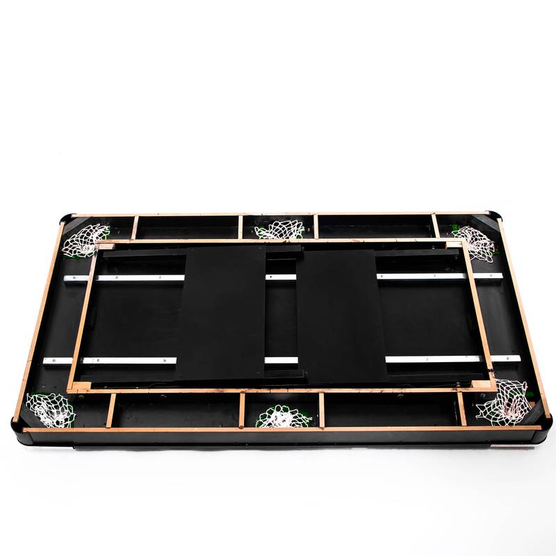 - Elevate your family game nights with this stylish black billiard table, thoughtfully designed for both adults and kids. Made from durable MDF and metal, this foldable table is perfect for saving space while providing endless hours of fun.