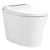 - Upgrade your bathroom with our sleek, modern smart toilet, featuring a stunning silver and white ceramic design. This elongated, one-piece toilet combines comfort and convenience with standout features: