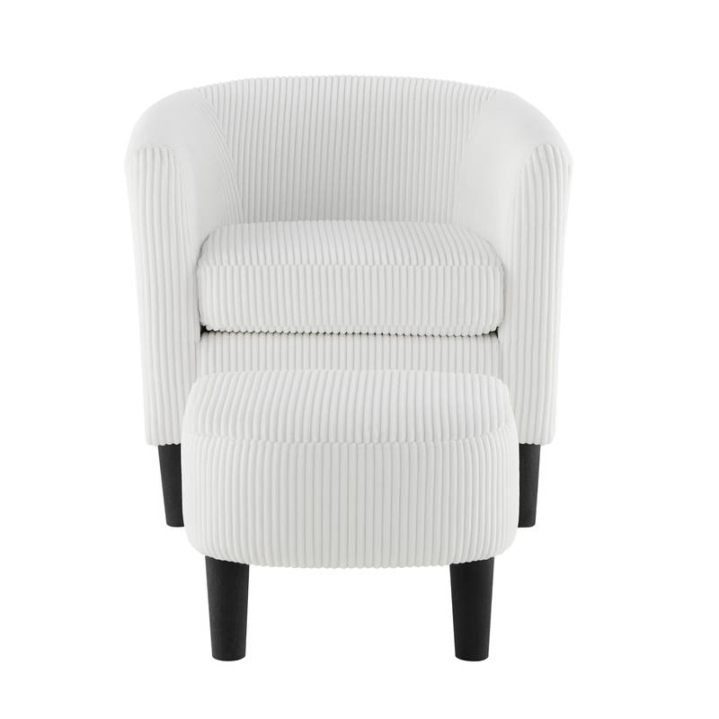 - Introducing our stylish and cozy armchair and ottoman set, designed to elevate your living space! Featuring a timeless white corduroy fabric, this set blends functionality with modern aesthetics.