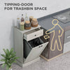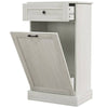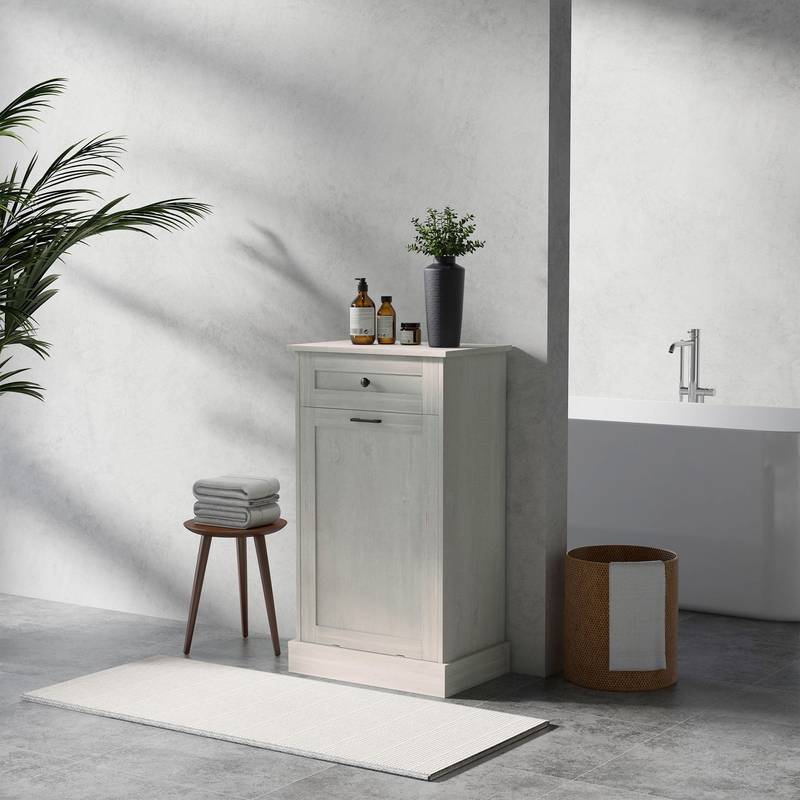 - Upgrade your kitchen with our stylish light gray trash cabinet, designed for functionality and space-saving. Measuring 20"W x 13.3"D x 35.5"H, it features a spacious design with a tilt-out door cabinet and a drawer, perfect for hiding away trash or laundry while providing an attractive surface for dishes and appliances.
