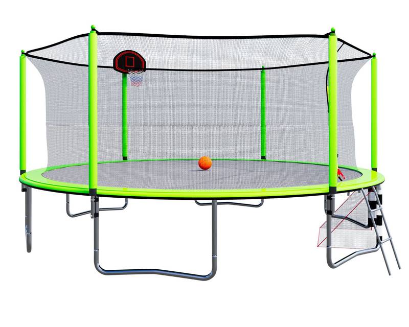 - Introducing our premium trampoline, designed for fun and safety! Crafted in China from durable green steel, this trampoline measures 192.13 inches in both length and width, with a height of 106.32 inches and a weight of 161.38 lbs.