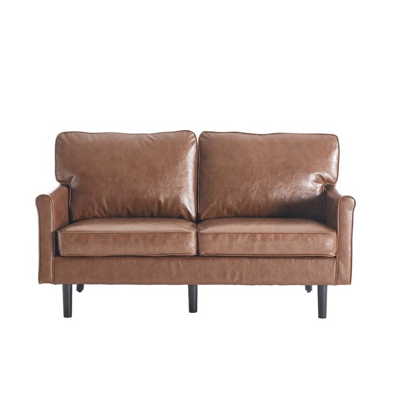 - Transform your living space with our stylish and versatile loveseat. Crafted from durable brown PU leather, this 2-3 seat couch boasts a breathable, stain-resistant cover that's easy to clean with its detachable zippered design. Enjoy lifelong comfort with a high-elastic sponge seat cushion that maintains its shape, while the plush back cushion provides cozy support.