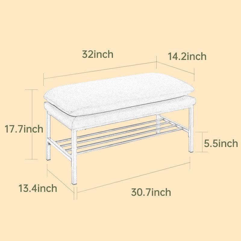 - With dimensions of 14.2 inches long, 32 inches wide, and 17.7 inches high, it’s the ideal size for seating guests, offering storage for pillows, or as a shoe stand in your entryway. Its generously padded design combines high-density sponge and seat foam for ultimate comfort, while sturdy metal legs ensure stability and support.