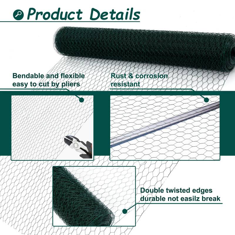 - Introducing our premium poultry netting—your go-to solution for protecting gardens and pets alike. Crafted from high-quality metal with a durable green coating, this lightweight yet sturdy chicken wire is perfect for fences, enclosures, and livestock confinement.