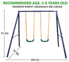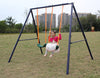 - Introducing our sturdy and stylish swing set, perfect for little ones aged 3 to 8! With a solid heavy-duty steel frame, this A-frame construction ensures a safe swinging experience for your children.